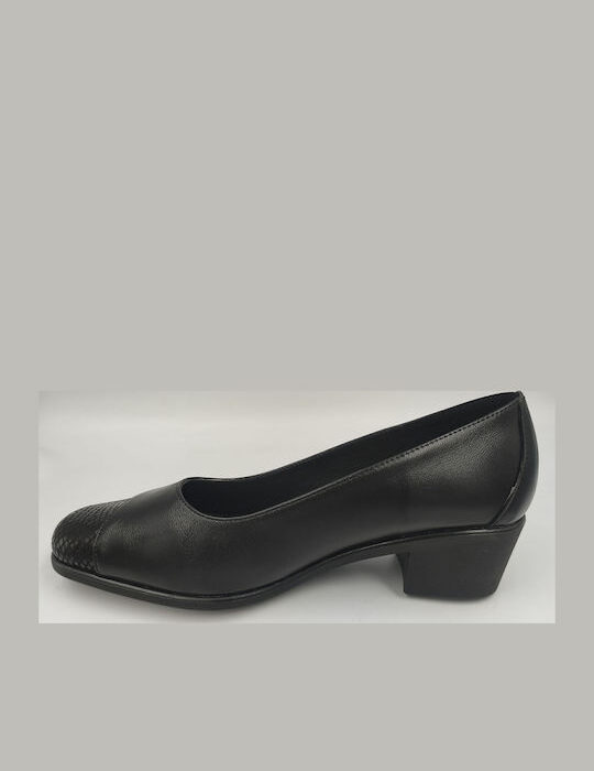 Μαύρες δερμάτινες ανατομικές γόβες ελληνικής κατασκευής με τετράγωνο χαμηλό τακούνι και κροκό λεπτομέρειες μπροστά. Διαθέτουν δερμάτινο ανατομικό πάτο για αναπαυτικό βάδισμα και αντιολισθητική σόλα για μεγαλύτερη ασφάλεια.
