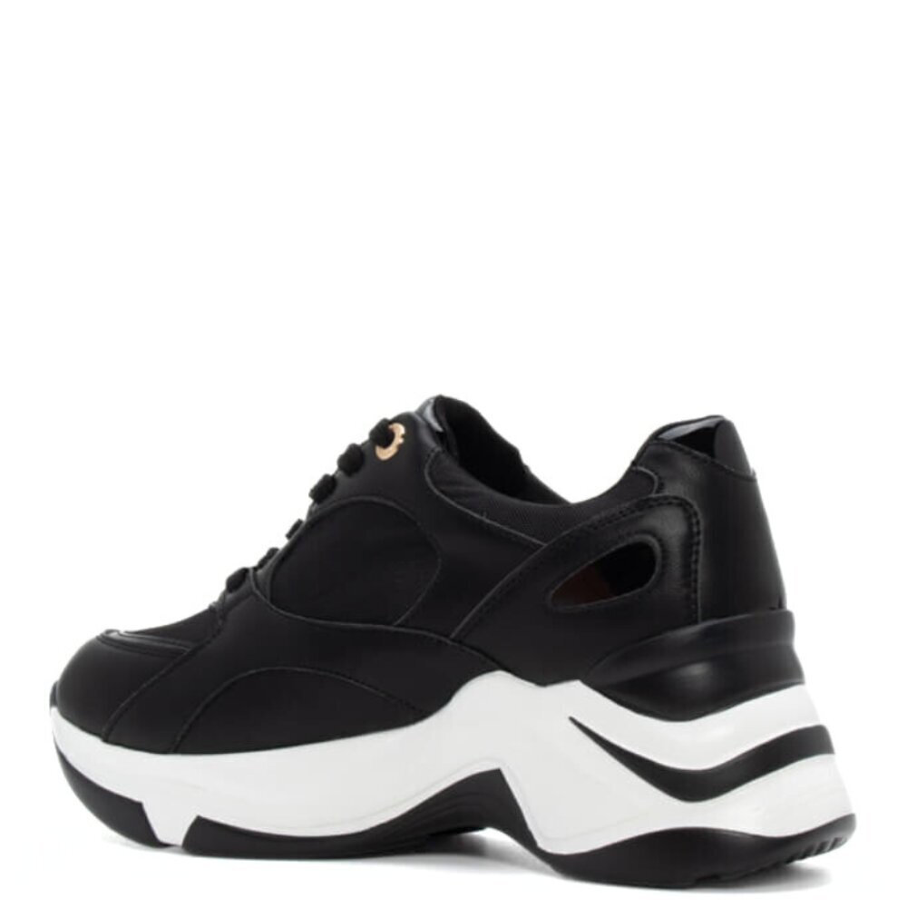Κομψά και μοντέρνα, αυτά τα wedge sneakers προσφέρουν στυλ σε κάθε εμφάνιση. Οι μεταλλικές λεπτομέρειες παρέχουν διακριτική λάμψη, ενώ η κανονική φόρμα και η αναπαυτική σόλα εξασφαλίζουν σταθερό και ξεκούραστο πάτημα όλη μέρα. Ιδανικά για γυναίκες που επιθυμούν να προσθέσουν έναν μοντέρνο χαρακτήρα στις casual εμφανίσεις τους χωρίς να θυσιάσουν την άνεση.